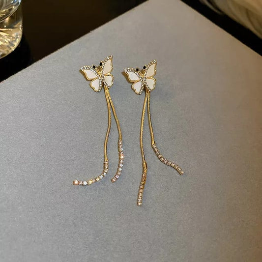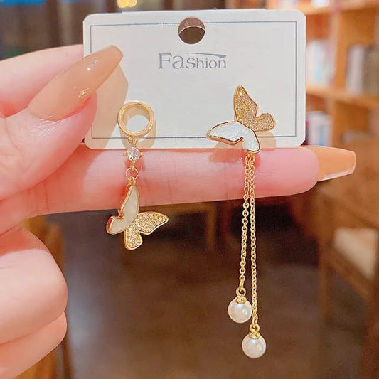 Yu Fashions Butterfly Tassel Golden Asymmetrical Korean Earrings Pair