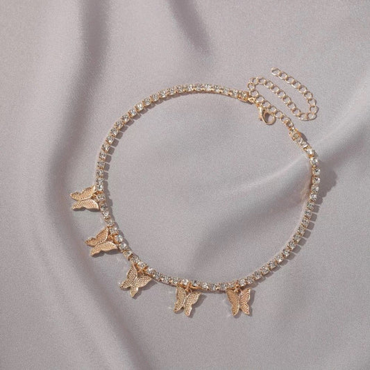 Yu Fashions Butterfly Rhinestone High Fashion Korean Anklet