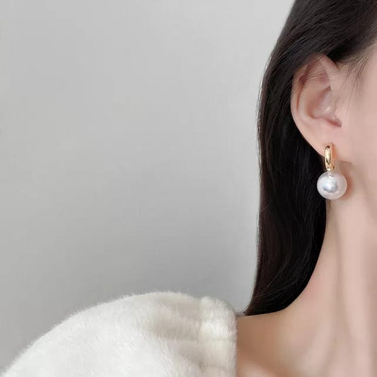 Yu Fashions C Shaped Golden Round Pearl Korean Earrings Pair