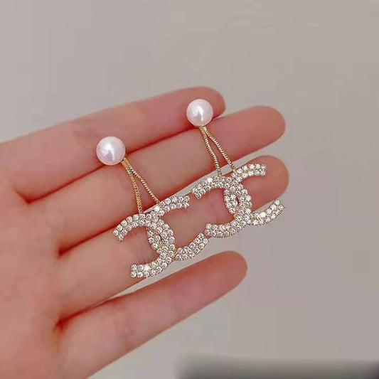 YU Fashions Chanel CC Inspired Zircon Studded dangler Korean Earrings