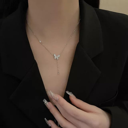 Yu Fashions Butterfly Rhinestone Charm Korean Necklace