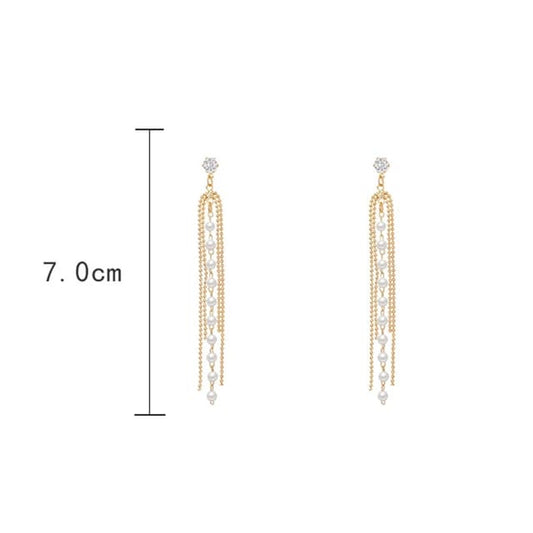 Yu Fashions Chain Tassel Pearl Korean Earrings Pair