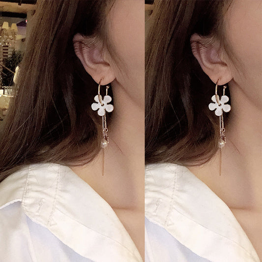 Yu Fashions Crystal Pearl Tassel High Fashion Korean Earrings Pair