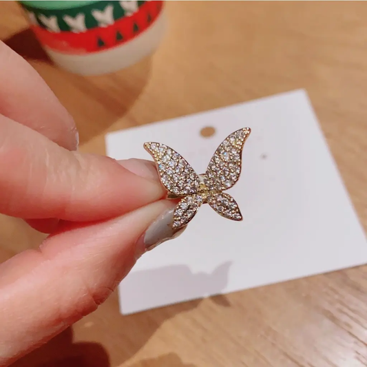 Yu Fashions Cute Golden Rhinestone Single Pc Butterfly High Fashion Bone EarClip No Piercing earHook Ear Crawler Earring