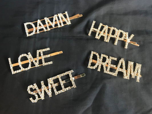 Yu Fashions Cute Pearl Stone Studded Golden Hair Pin Korean Set of 5