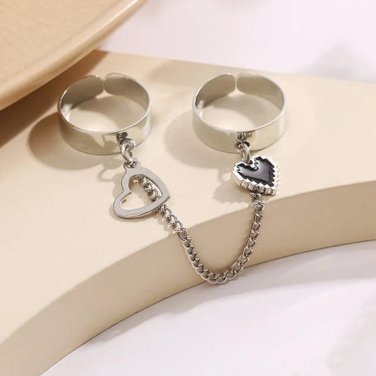 Yu Fashions Cute Heart Silver 2 Adjustable Chain Ring Set