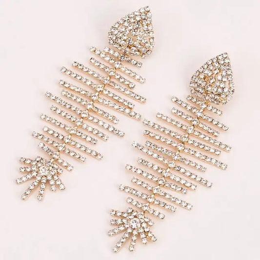 Yu Fashions Fish Skeleton Fish Bone Rhinestone Korean earrings Pair