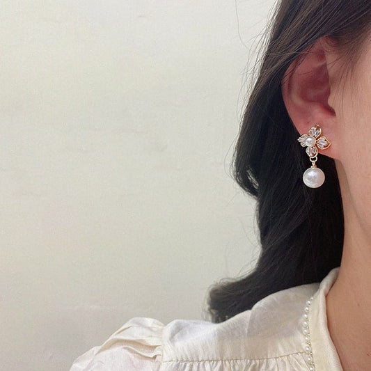 Yu Fashions Flower Pearl 2 way High Fashion Korean earrings Pair