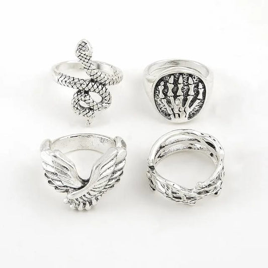 Yu Fashions Feather Wing Snake Wire Link Korean Ring Set of 4