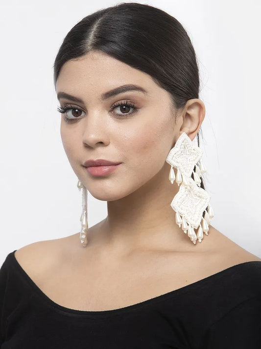 Yu Fashions Handmade Thread Embroidered Pearl Korean Earrings Pair