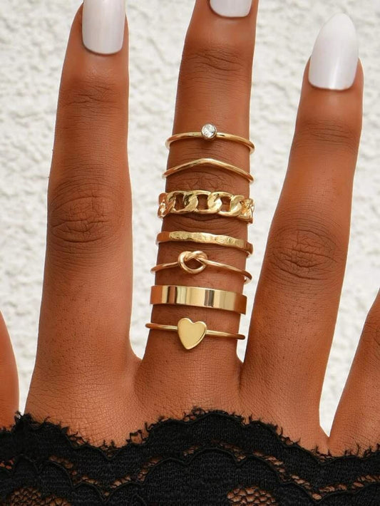 Yu Fashions Heart Chain Twisted Link Ring set of 7