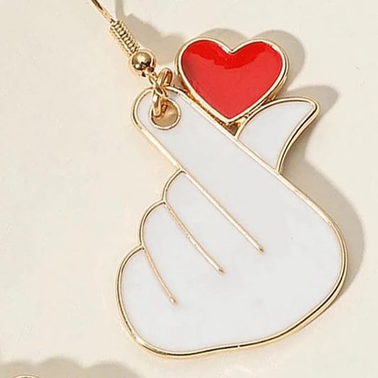 Yu Fashions Heart Click Cute Hand Korean Earrings Pair