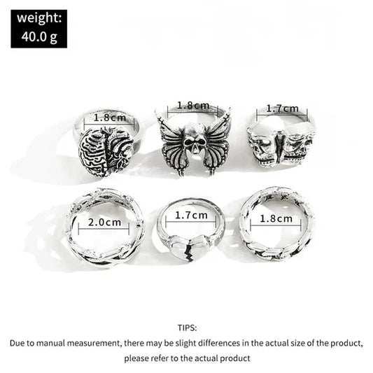 Yu Fashions Heart Broken Heart Skull Dragon Butterfly Korean Ring Set of 6