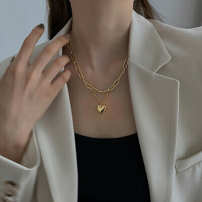 Yu Fashions Heart 2 layered Golden Pendent Link Necklace Chain