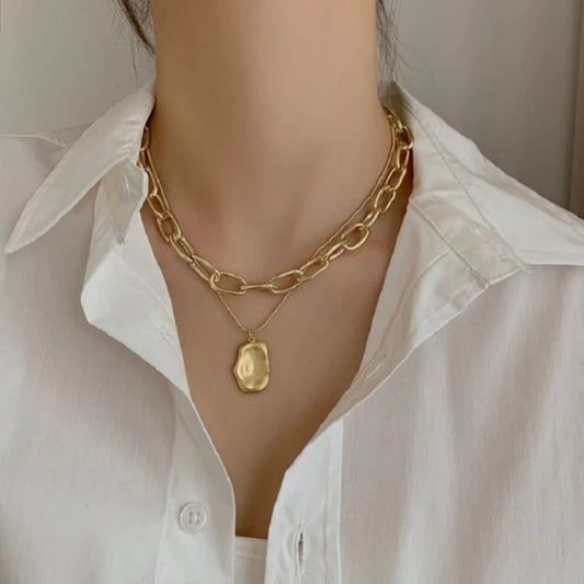 Yu Fashions Hina Khan Inspired 2 layered Geometrical Pendent Link Chain Necklace