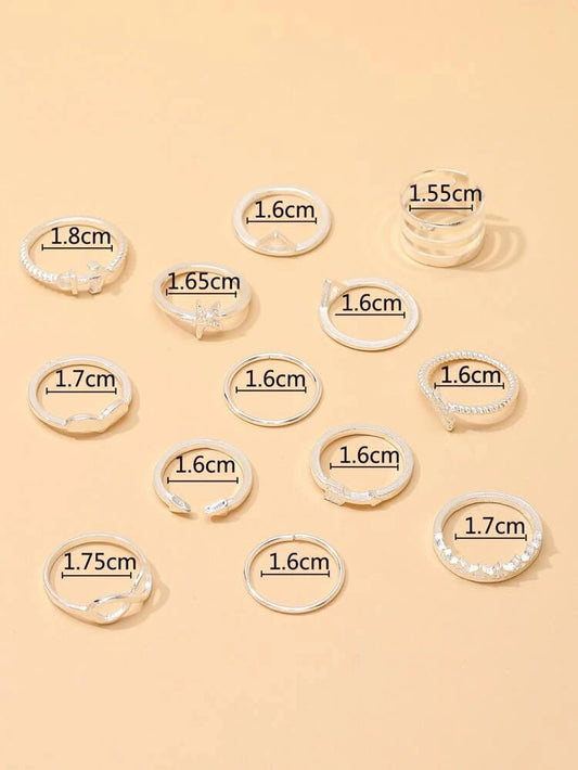 Yu Fashions Infinity Bohemian Silver Ring Set of 14