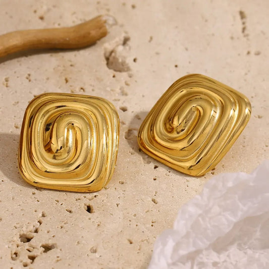 Yu Fashions Melted Square Shaped Zig Zag Anti Tarnish waterproof Korean earrings