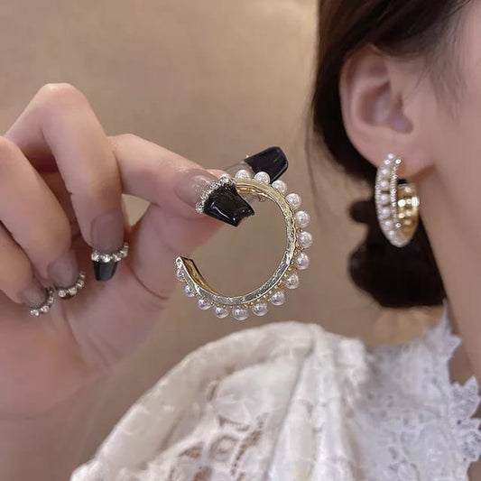 Yu Fashions Pearl Rhinestone Arch Shaped High Fashion Korean Earrings Pair