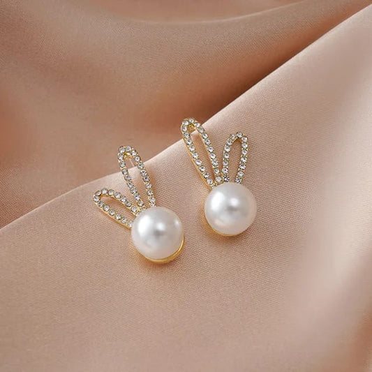 Yu Fashions Pearl Rabbit Stud Rhinestone High Fashion Korean Stud earring