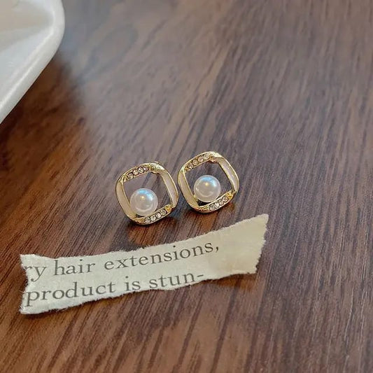 Yu Fashions Pearl High Fashion Crystal Korean earrings Stud Pair