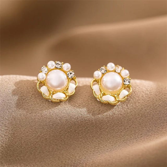 Yu Fashions Pearl Rhinestone Enamel Painted High Fashion Korean Earrings studs Pair