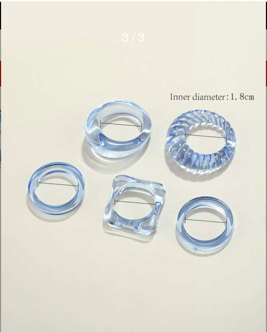 Yu Fashions Pinterest Inspired Funky Acrylic Resin Transparent Blue Clear Ring Set of 5