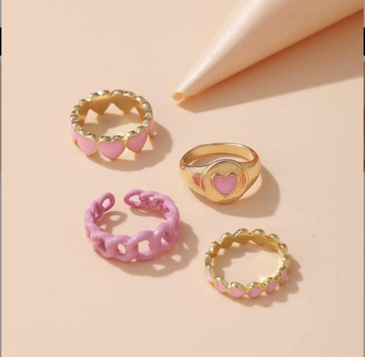 Yu Fashions Pink Acrylic Heart Golden Ring Set of 4