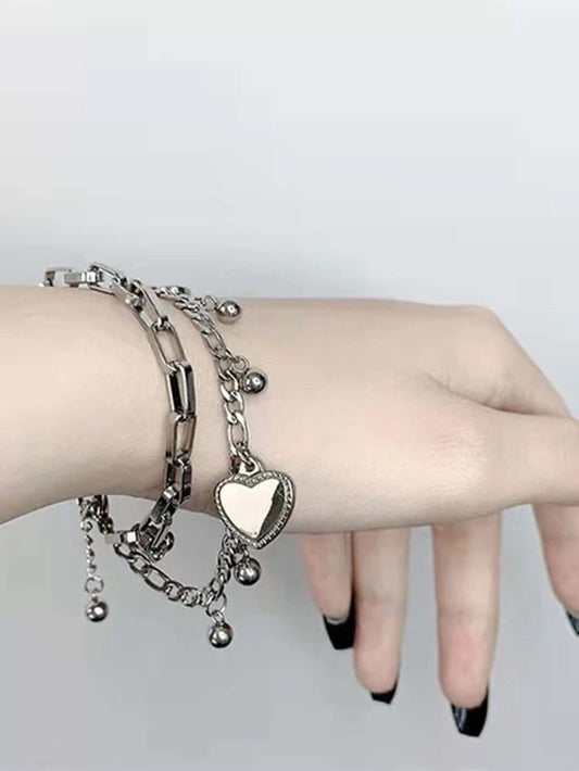 Yu Fashions 2 layered Heart Charm Link Chain Stainless Steel Multilayered Korean Bracelet