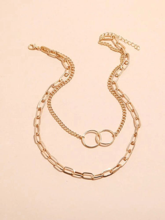 Yu Fashions 2 Circle 2 layered Necklace Chain