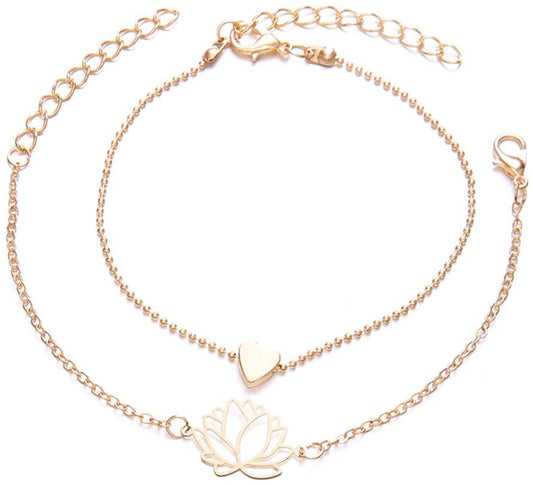 Yu Fashions 2 layered Heart & Lotus Layered Korean Anklet