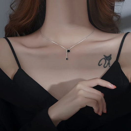 Yu Fashions 2 Black drop Geometrical Pendent Necklace Chain