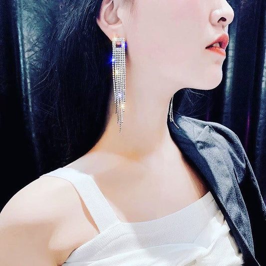 Yu Fashions Rhinstone tassel High Fashion Korean earrings Pair