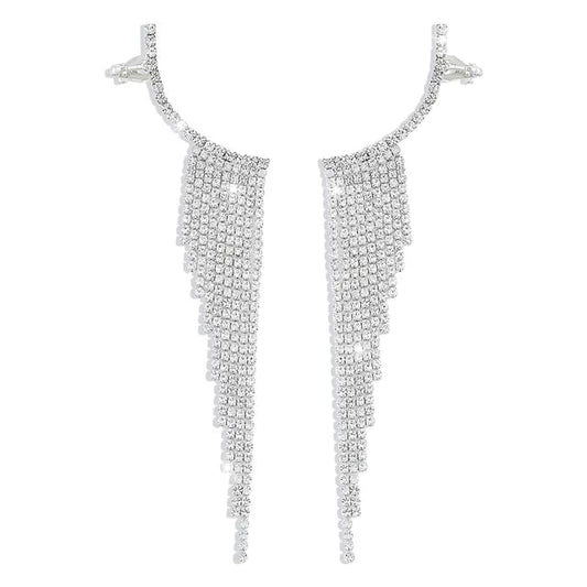 Yu Fashions Rhinestone Tassel High Fashion Korean Earrings Pair