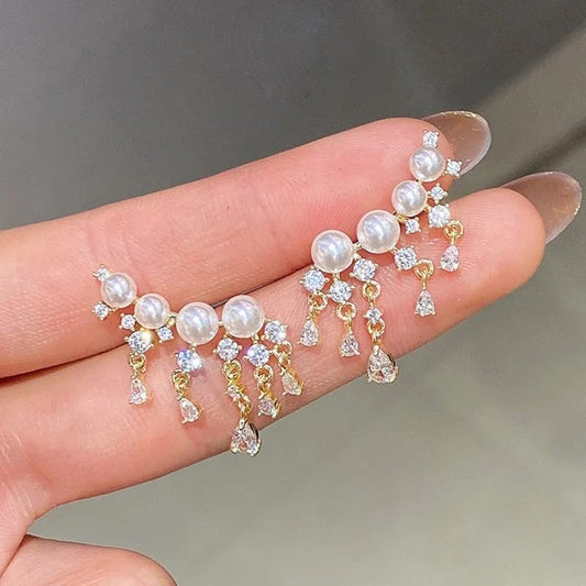 Yu Fashions Rhinestone Pearl Drop High Fashion Korean Earrings Pair