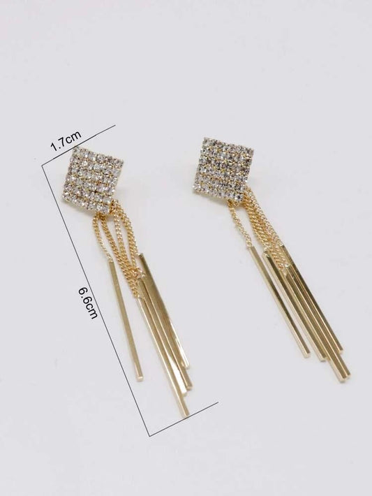 Yu Fashions Rhinestone Square Shaped Tassel Korean earrings Pair