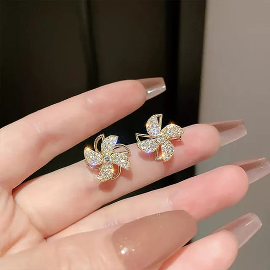 Yu Fashions Rorating Four Clover Flower High Fashions Korean Earrings Stud Pair