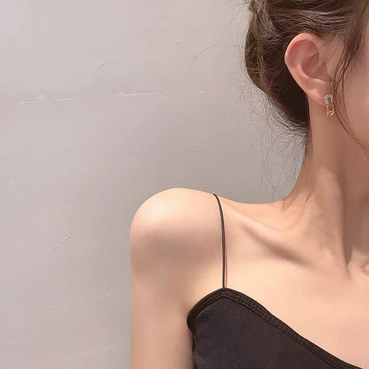 Yu Fashions Rhinestone Safety Pin Korean Earrings Pair