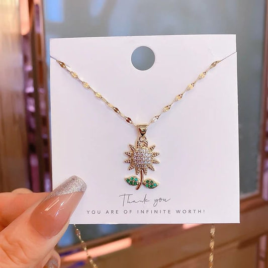 Yu Fashions rhinestone Rotatable Crystal Sunflower Green Golden High Fashion Necklace