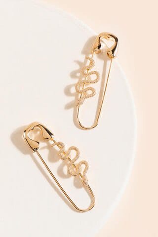 Yu Fashions Safety Pin Snake Golden Korean Earrings Pair