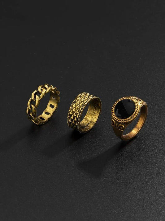 YU Fashions Rust Golden High Fashion Black Stone Korean Ring Set of 3