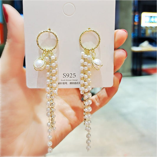 Yu Fashions Shell Pearl Tassel High Fashion Korean earrings Pair