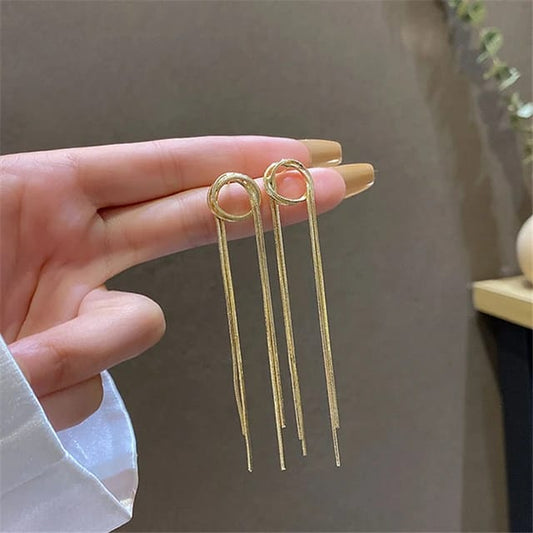 Yu Fashions Round Geometrical golden tassel High Fashion Korean earrings pair