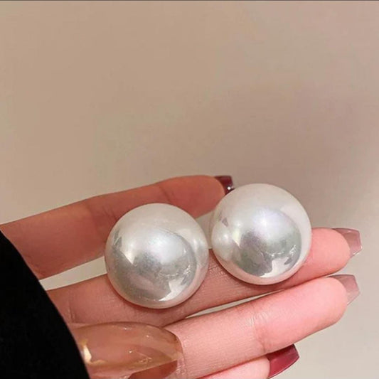 Yu Fashions Round Shaped High Fashion Freshwater Oversized Pearl Korean Earrings Pair