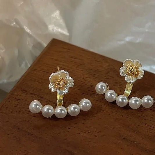 Yu Fashions Sensation Party Pearl Bead Flower Stud Korean Earrings for Women