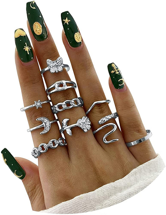Yu Fashions Snake Animal Butterfly link Stone Ring Set of 10