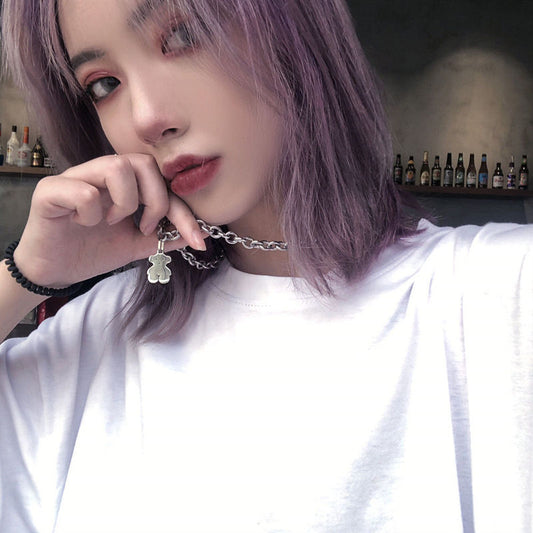 Yu Fashions Silver Teddy Minimal Pendent Chain Necklace