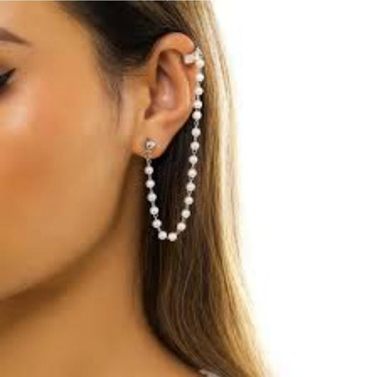Yu Fashions Single Pc Pearl Chain Korean EarHook Earring
