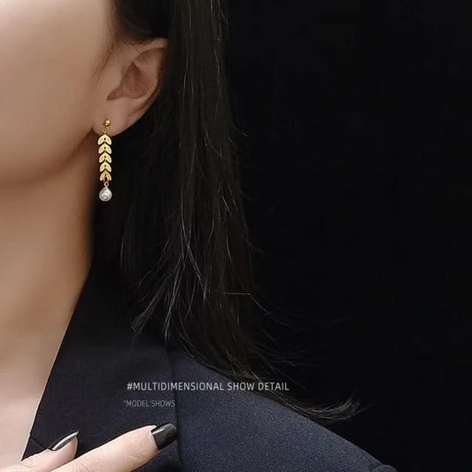 Yu Fashions Sleek Fish Fins High Fashion Petal Drop Pearl Korean earrings Pair