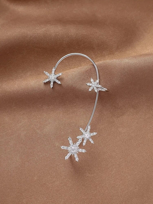 Yu Fashions Snow Flake Silver Single Pc Earhook Crawler Korean Earring