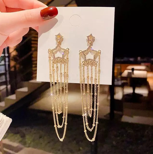 Yu Fashions Star Chain Tassels High Fashion Korean Earrings Pair